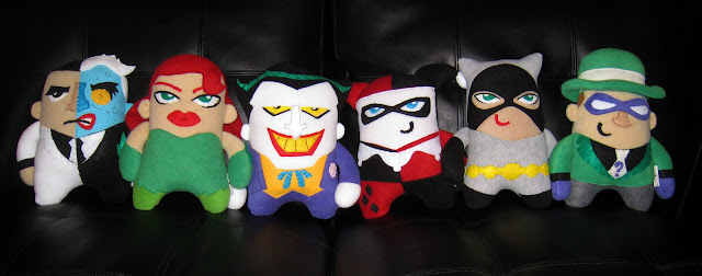 Hey Everyone! So, I just finished the next set of Batman pieces, except this time I made nothing but bad guys (and gals). I'm loving this series and I am pretty happy at how they are turning out. First up on the plush rogues gallery is the mischievous Catwoman...